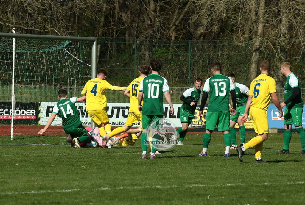Nach gut 15 Minuten war es dann soweit: Weißenfels fand eine Lücke im Abwehrbollwerk und erzielte das 0:1. In der Folge versuchte Braunsbedra, etwas aktiver am Spiel teilzunehmen – wodurch sich jedoch mehr Räume für die Gäste ergaben. Diese nutzte Weißenfels eiskalt aus und baute die Führung bis zur Pause auf 0:4 aus.