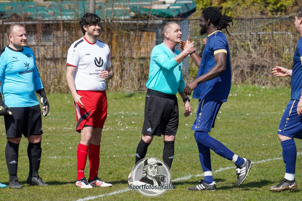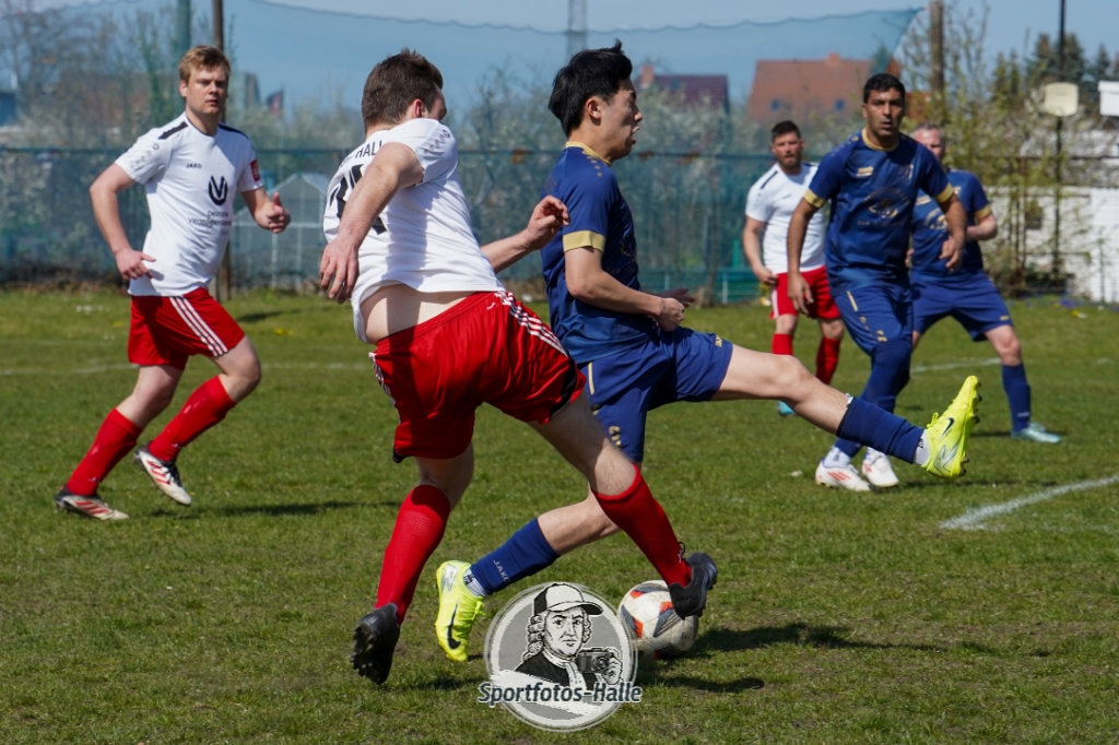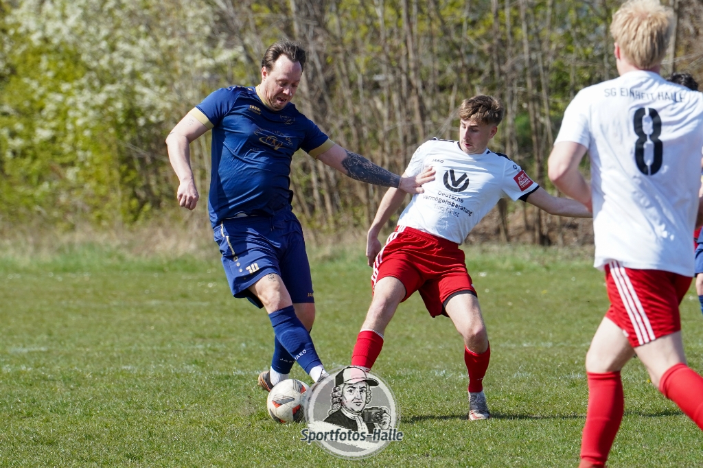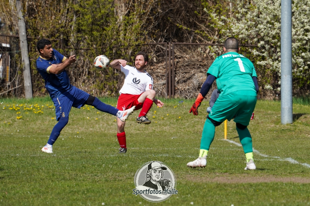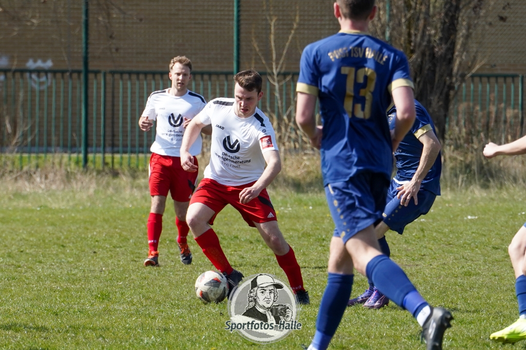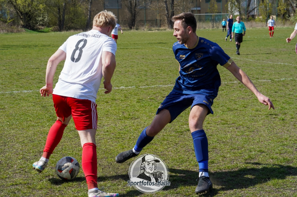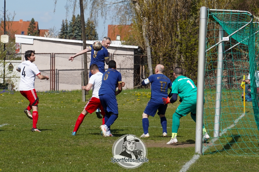 Den besseren Start erwischte der Post TSV Halle: In der 13. Minute brachte Cheikhna Sadibou Diouf seine Mannschaft mit 1:0 in Führung. Nur neun Minuten später erhöhte er mit seinem zweiten Treffer auf 2:0 (22.). Kurz vor der Pause kam die SG Einheit Halle durch Florian Hilprecht zum Anschlusstreffer (43.) und hielt die Partie damit offen.